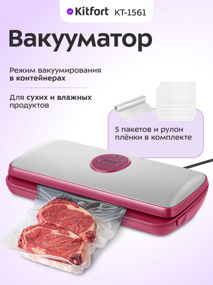 В целом покупкой доволен, давно хотел вакууматор, но все думал какой взять. Из всех вариантов которые я просмотрел, kitfort оказался лучшим выбором.