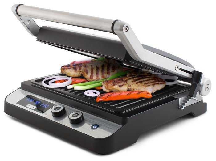 | Особенности : | антипригарное покрытие, контактный гриль, крышка, поддон для сбора жира, регулировка высоты верхней панели, решетка, съемные пластины |