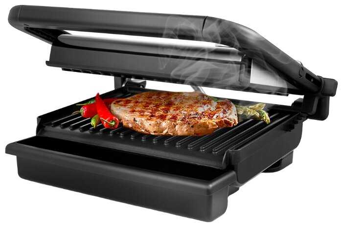 - Режимы для открытой жарки (сэндвичи), полузакрытой (курица) и полного прижима (овощи).