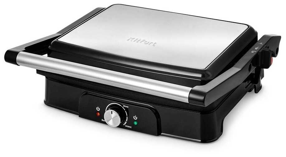 - + Двухсторонний нагрев, пластины раскладывается на 180 градусов, есть стаканчики для слива жира, темп. Нагрева 230 гр. Приготовление достаточно быстрое.