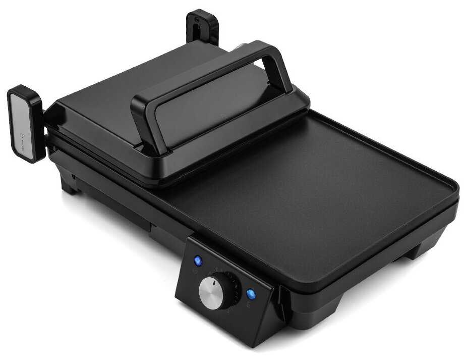 - + Хорошее покрытие, ничего не пригорает, хорошо открывается-закрывается, удобная панель для жарки без рельефа. Есть подставка для жира.