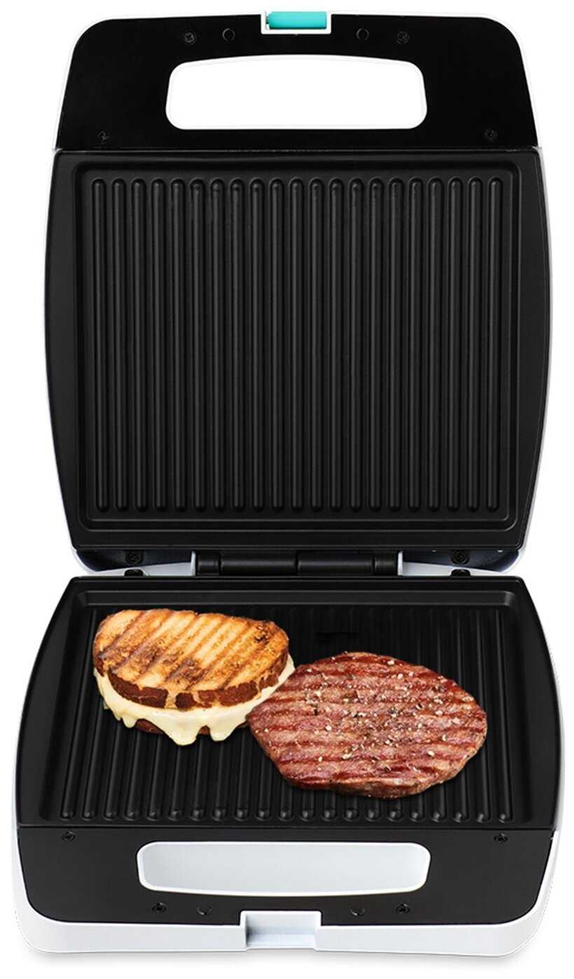 - + Гриль очень быстро разогревается и так же быстро готовит еду. Очень удобный в использовании и практичный. Не занимает много места. Идеально подходит для приготовления быстрого перекуса или даже полноценного обеда