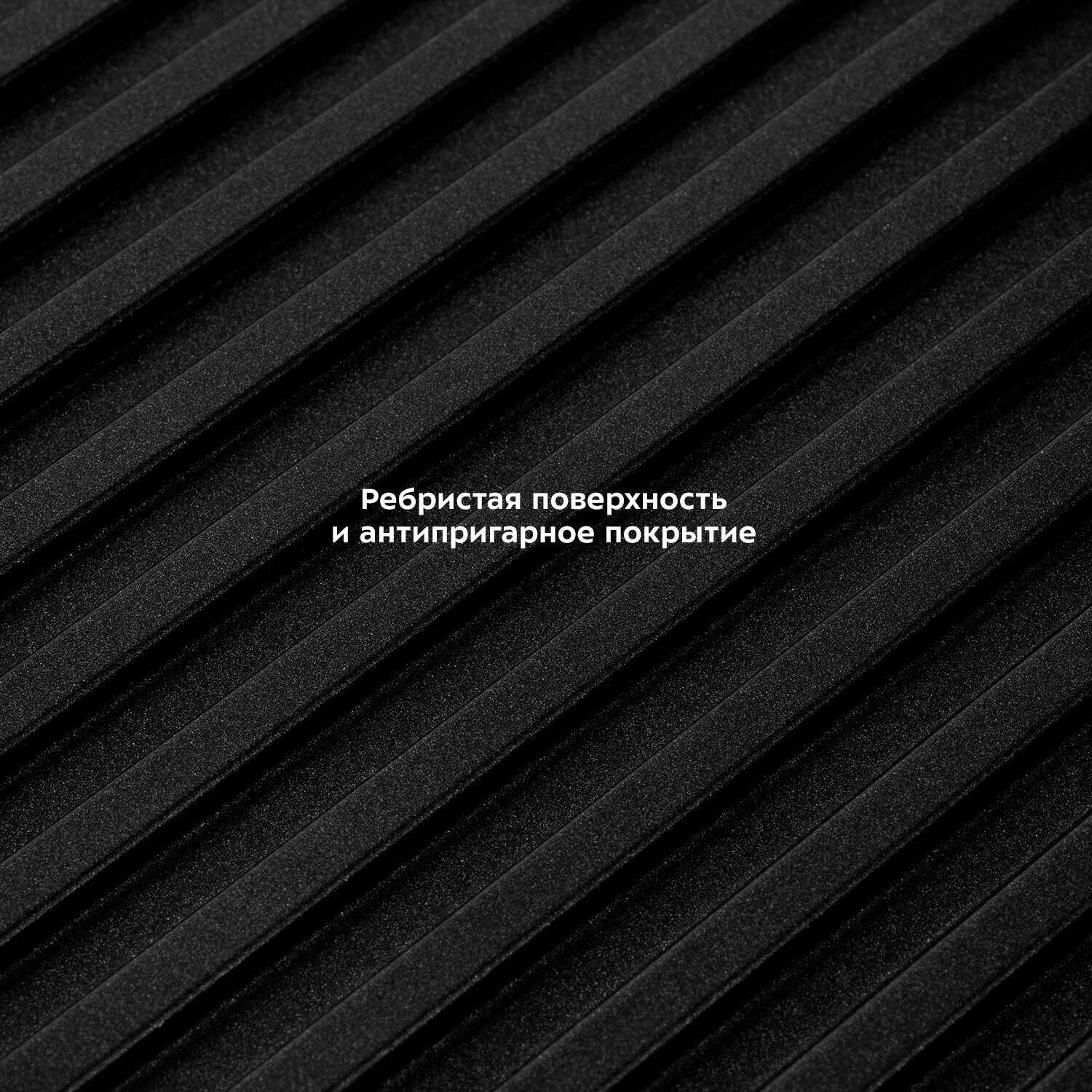 - Ребристые панели с антипригарным покрытием создают аппетитную корочку на мясе, овощах и бутербродах без прилипания.