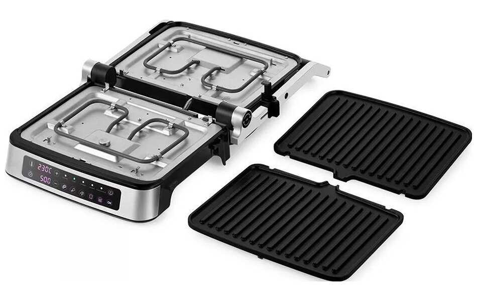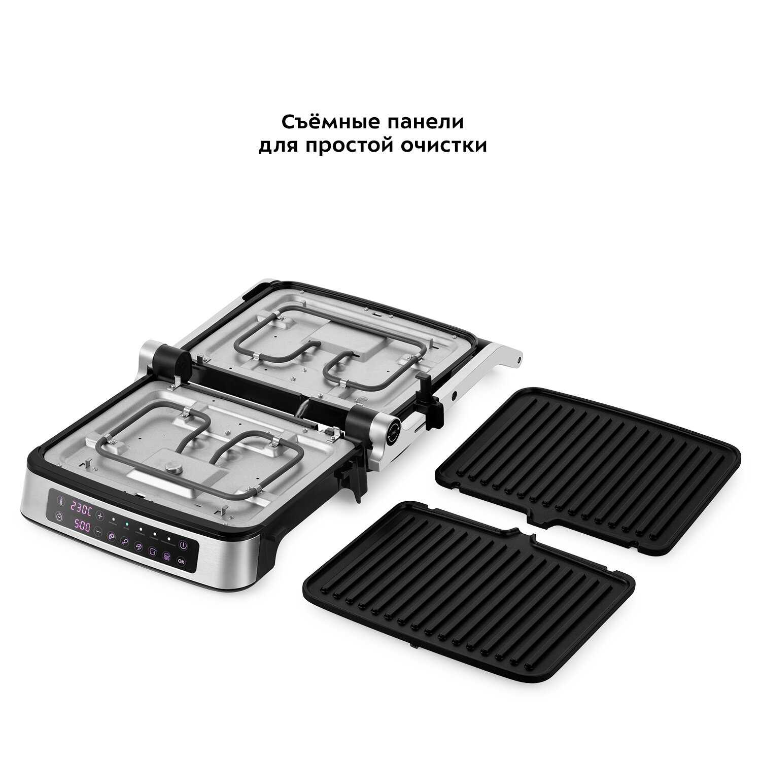- Панели со скругленными углами легко снимаются и моются за 5 минут (включая посудомоечную машину), а жиросборник предотвращает загрязнение корпуса.