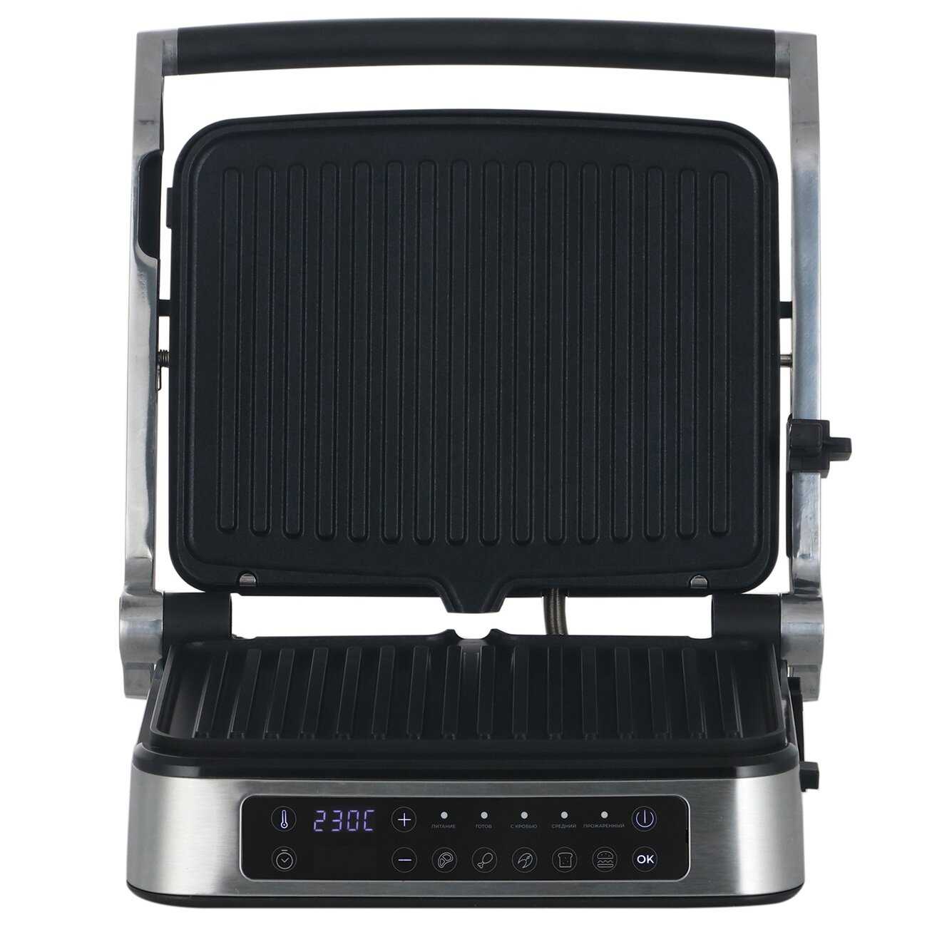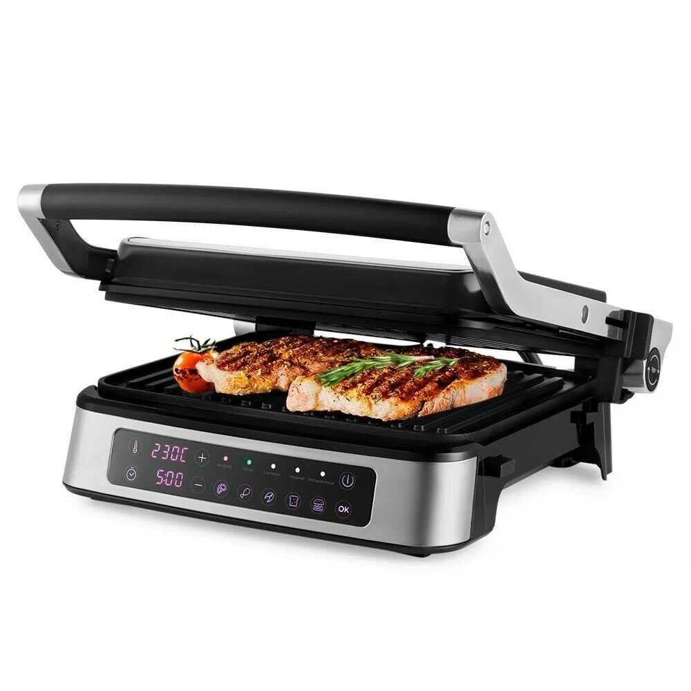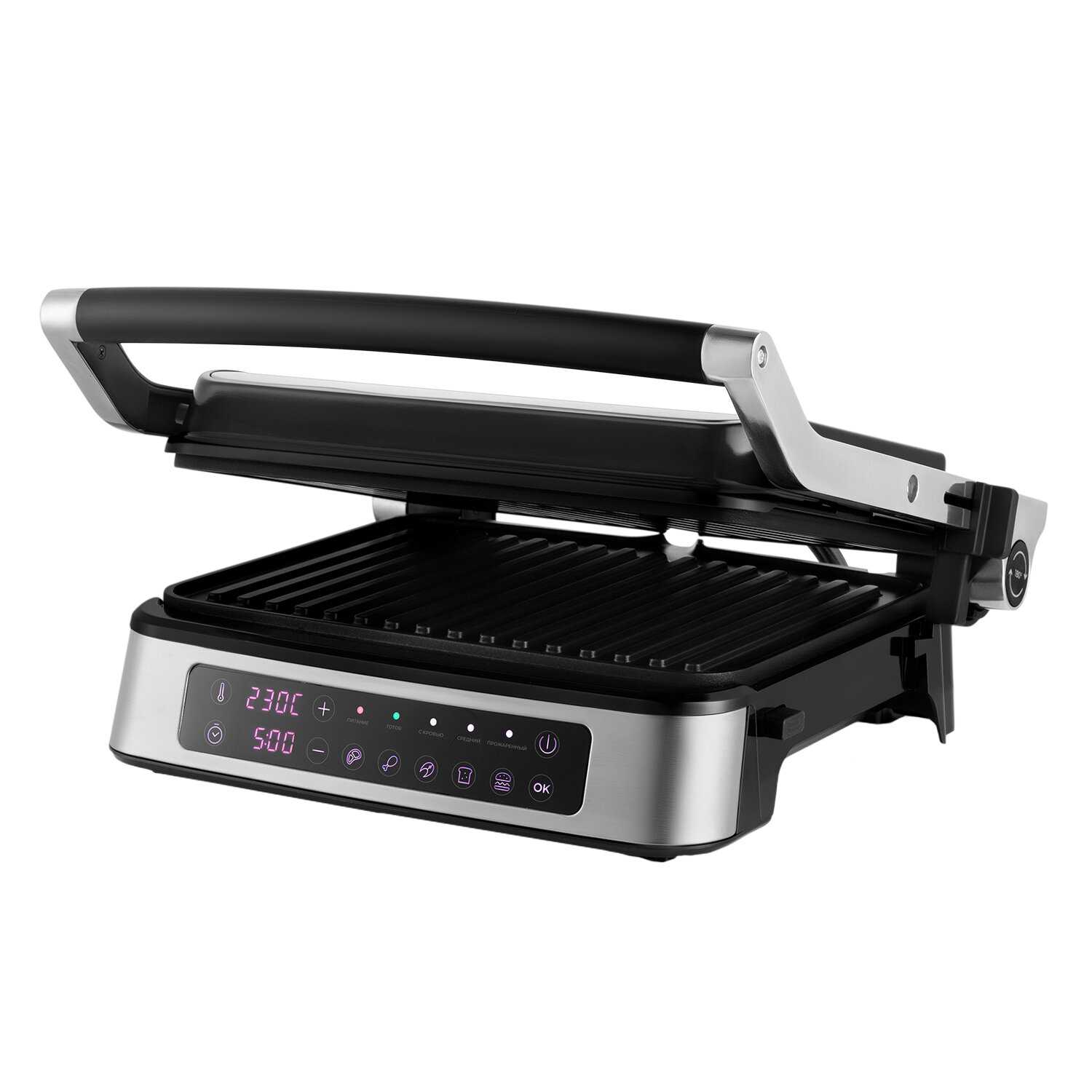 - 5 автоматических программ (мясо, рыба, бургеры, тосты, овощи) с точной терморегуляцией (до 230°C) и таймером отключения.