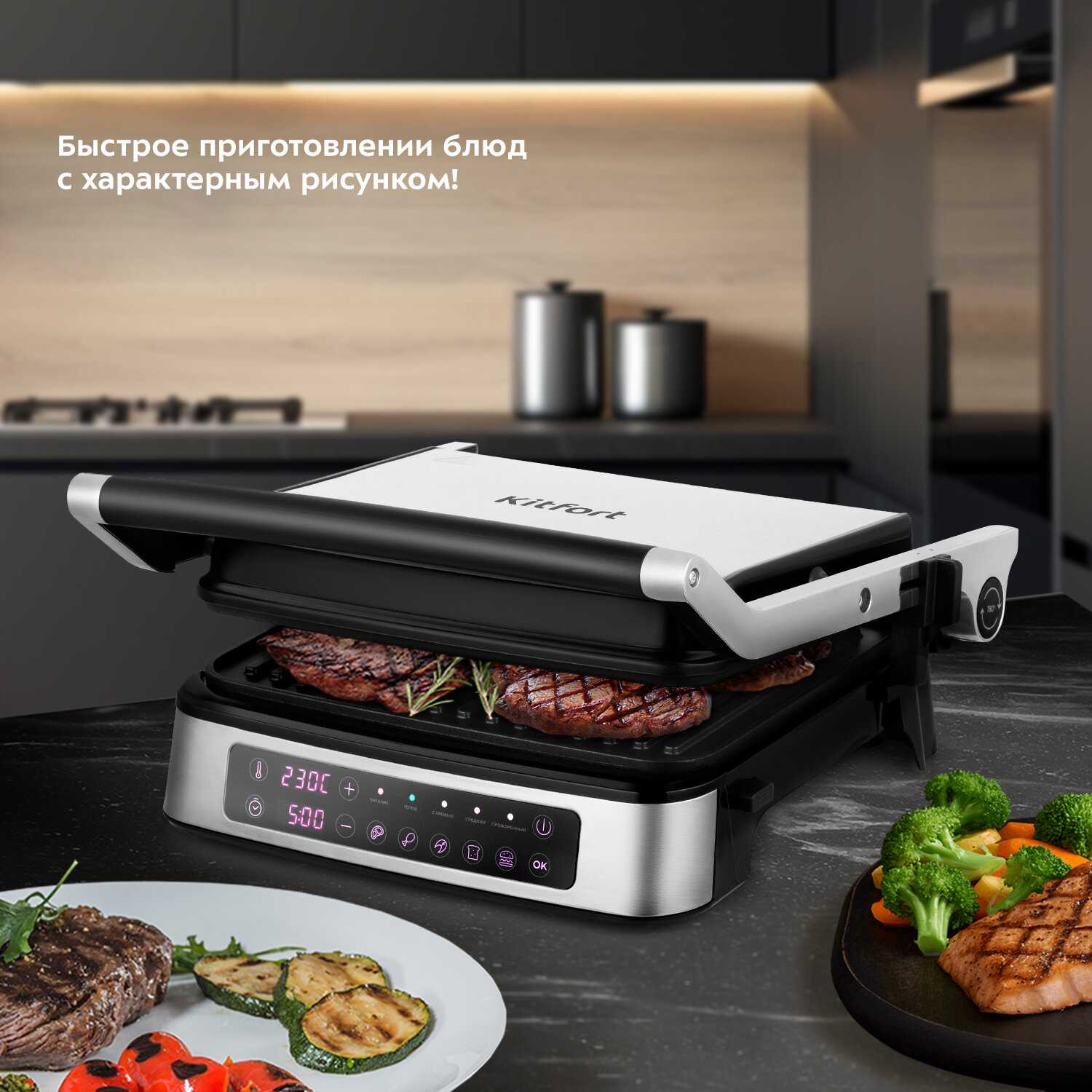 Приобрел электрогриль Kitfort в подарок папе и остался доволен покупкой! Гриль компактный, стильно выглядит и отлично вписывается в интерьер кухни. Нагревается быстро, есть несколько режимов нагрева, благодаря которым можно легко приготовить стейки, овощи или бутерброды.