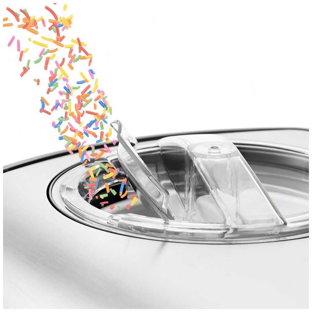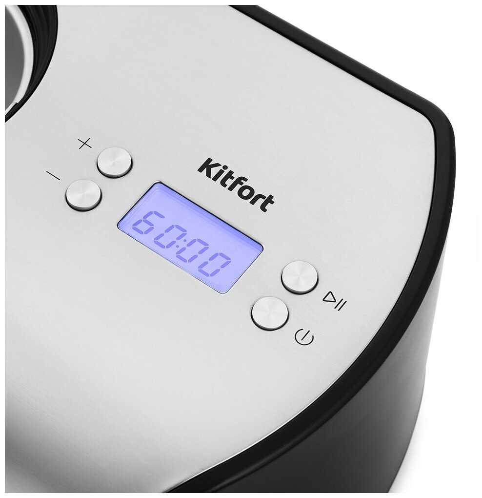 - + Есть компрессор, за 30-40 минут мороженое готово, благодарю Kitfort за мерный стаканчик в комплекте, крышку с удобным закрывающимся окошком. Быстро и удобно. Размешивание прекращается при сильном загустении массы.