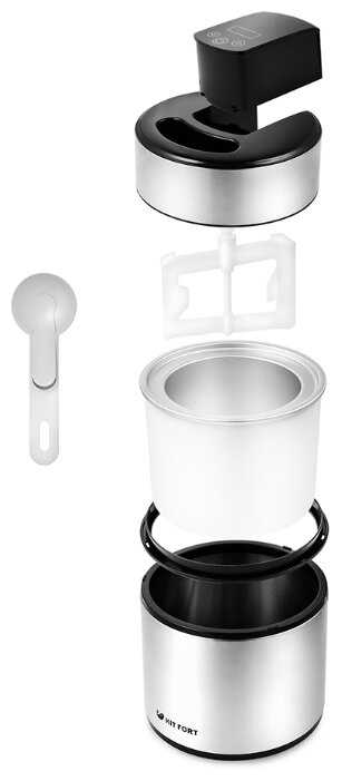 - + Получается вкусное мороженное, из обычных ингредиентов. Компактные габариты, не тяжелая. Чаша для морозилки небольшая, но мне пришлось убрать пластиковый контейнер и ставить ее на решетку, так как с контейнером она никак не влезает, имейте ввиду габариты при заказе. Ложечка была в комплекте.