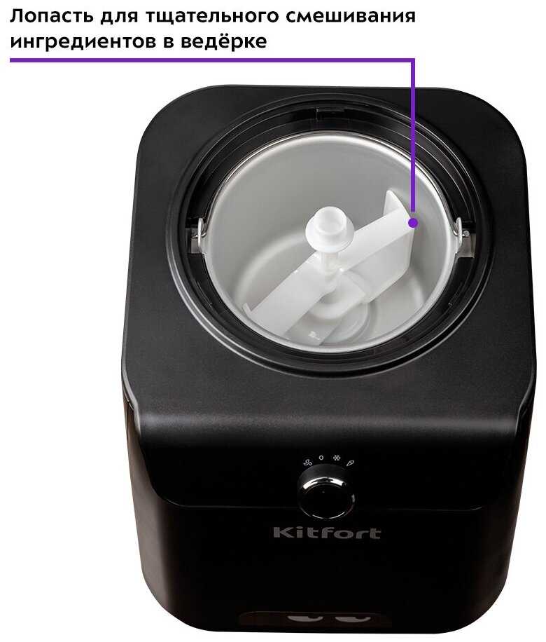- + красивый дизайн, очень удобно, что есть три режима (перемешивание, замораживание и приготовление мороженного). достаточно объемное ведёрко, хватает для приготовления 5-6 порций за раз, получается достаточно вкусное мороженное. Легко моется и проста в обслуживании. Имеется защита от перегрева.