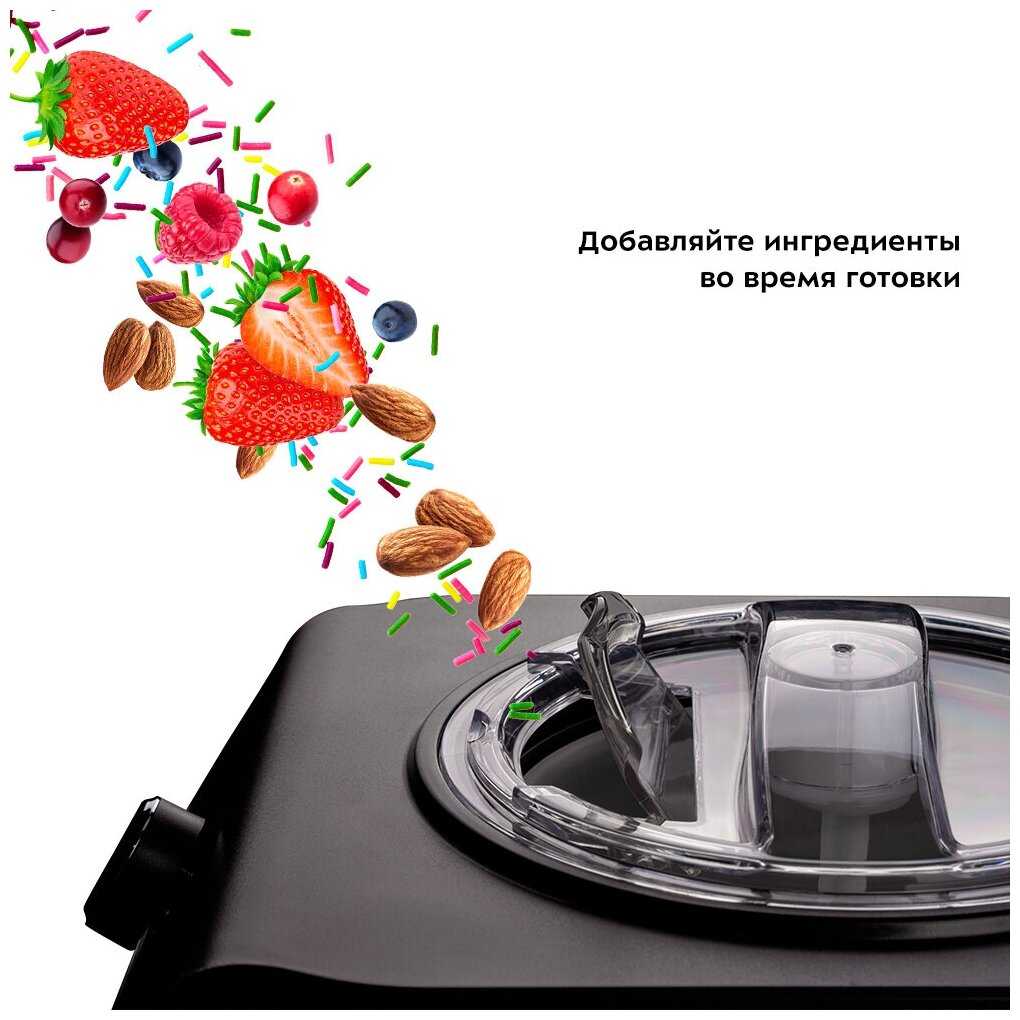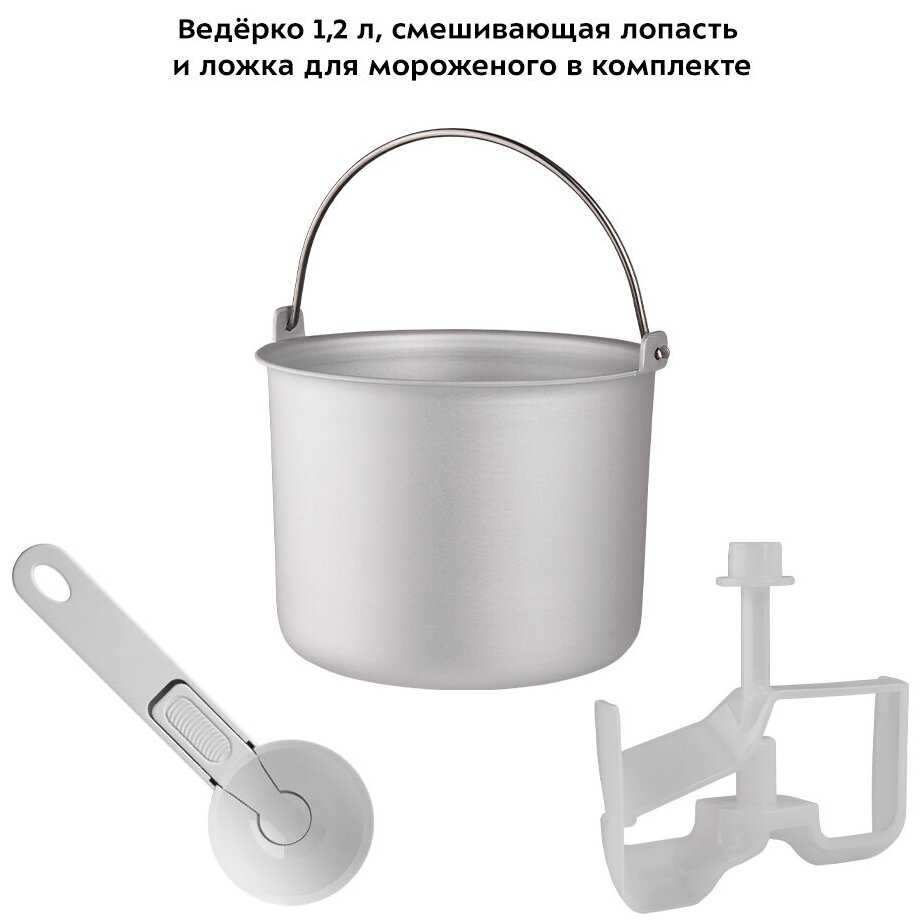 - + Идеально в домашних условиях. Мороженое получается очень вкусное. Легко в использовании. Инструкция с рецептами в комплекте.