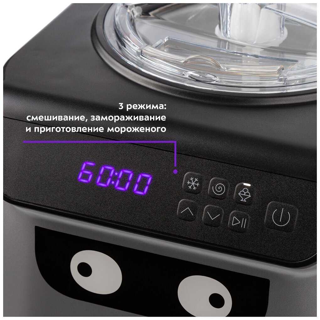 - + Это просто чудо! В любой момент домашнее мороженое без консервантов! Можно включить фантазию и придумывать рецепты. Пользуемся уже вторую неделю и делаем иногда по нескольку разных мороженых в день. Сам прибор работает тихо, выглядит очень стильно, места занимает мало. Порция мороженого получается довольно большая - вдвоем за раз не съедаем. Довольно сложно счищать мороженое (гутое) с лопаточки в чаше - она очень замысловатой формы, пока из всех изгибов силиконовой лопаточкой вычистишь, в чаше уже таять начинает. Покупкой очень довольны. Покупала мужу в подарок на день рождения, как самому главному любителю мороженого) Планируем все лето делать фруктовые мороженые из разных фруктов из сада.