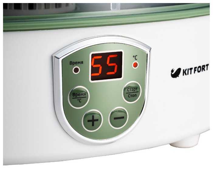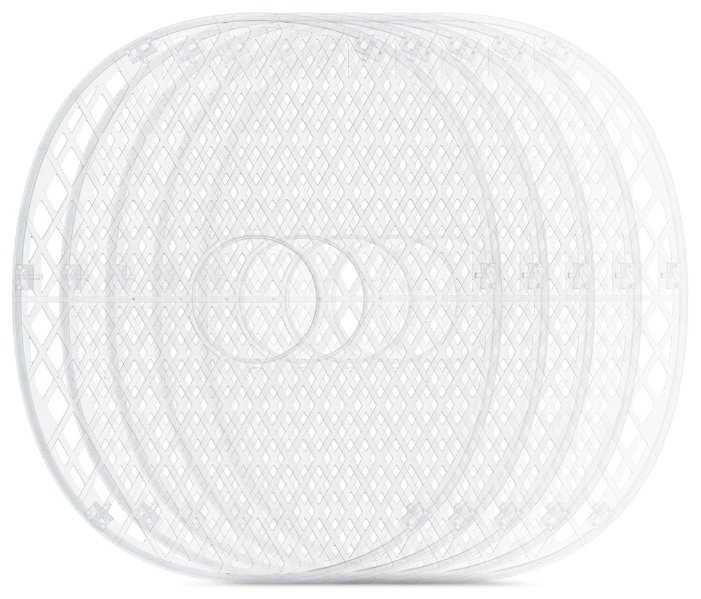 - Овальная форма и небольшие габариты (высота с пятью поддонами — 32 см) позволяют разместить устройство даже в малогабаритной кухне.