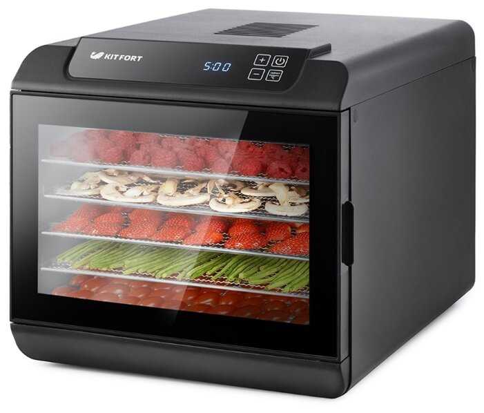 Давно смотрела за дегидраторами, и вроде уже решилась, глаз упал на китфорт 1904, либо 1906. Почему же выбор пал на 1904. У дегидратора все в наличии, имеется ввиду 6 поддонов для пастилы, 6 металических сеток и 6 пластиковых, ничего дополнительно не пришлось покупать. Очень большой плюс, это электронное меню на экране, шаг времени полчаса, что очень удобно и по истечении времени дегидратор отключается сам, издав предупреждающий звук. Температуру можно ставить до 70с, этого достаточно удобно, к примеру сушила мясо -чипсы, хаатило всего 4-5 часов чтобы сделать мясные чипсы(прям это обьеденье). Сушит очень быстро и качественно. Так же для меня подошел обьем (вместительность), вроде не большой, но в тоже время очень много входит. Работает дегидратор тихо, чисто слышно немного вентилятор. Очень рекомендую, не пожалеете