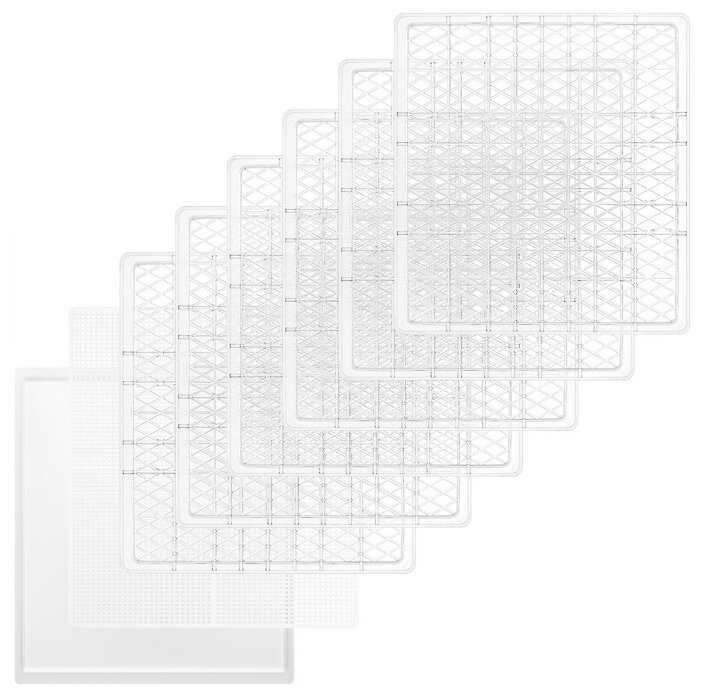 - 6 основных лотков для крупных продуктов (фрукты, овощи), 6 сеток для трав/ягод, 6 поддонов для пастилы.
