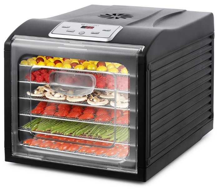 Приобрели на днях сушилку kitfort КТ-1906. Прибор полностью оправдал наши ожидания. Продукты просушиваются равномерно. Вентилятор большого диаметра обеспечивает равномерное распределение воздуха. Горизонтальный обдув не позволяет смешиваться запахам от разных продуктов. Начали с мясных деликатесов. Всё получилось сразу-же. Мясные колбаски и вяленое мясо разлетелось на ура. Фрукты и вяленые помидоры вышли очень вкусные. Прибор прост в управлении, справляется даже ребёнок. Можно регулировать температуру и время, много разнообразных поддонов, для разных продуктов. Места занимает не много, лёгкая и маневренная.