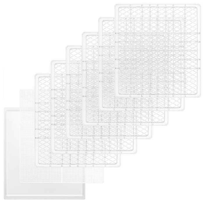 - В комплекте 6 основных поддонов, 6 сеток для мелких продуктов (ягоды, зелень) и 6 лотков для пастилы.