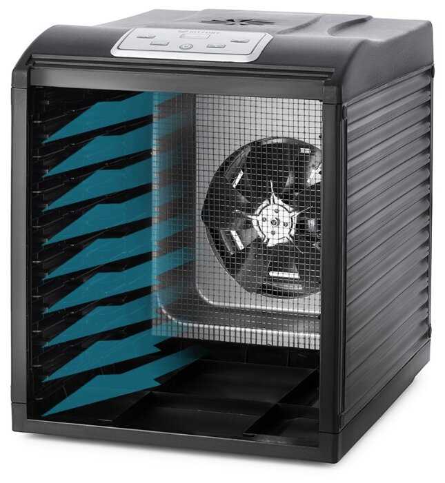 ✔ Равномерная сушка – благодаря верхнему вентилятору и продуманной циркуляции воздуха продукты не приходится постоянно перемешивать.