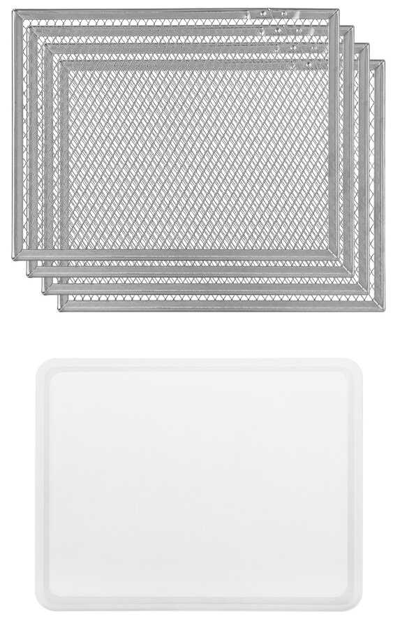 - 4 съемные сетчатые решетки из нержавеющей стали (23.5×18 см) выдерживают высокие температуры до 70°C, не деформируясь.