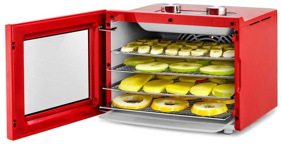 Первое, что бросается в глаза — это стильный и компактный дизайн. Сушилка легко вписывается в интерьер и не занимает много места. Удобная конструкция с несколькими уровнями позволяет сушить сразу несколько видов продуктов, что экономит время.