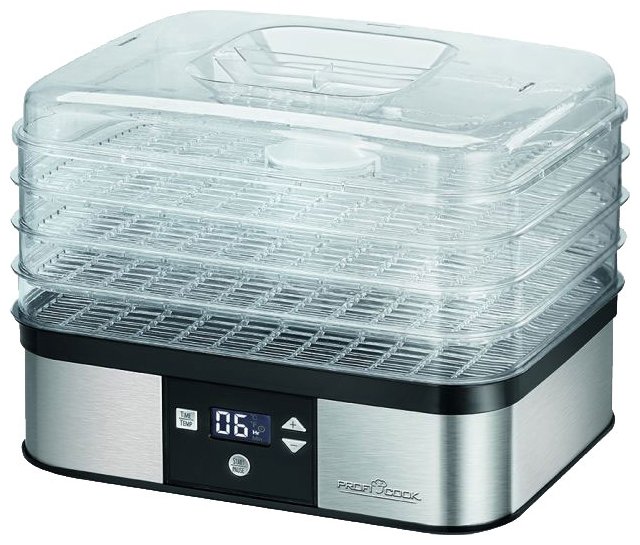 - + - Многофункциональность – наличие в комплектации и металлических решеток, и пластиковых сеток, и поддонов позволяет сушить овощи, фрукты, ягоды, мясо, готовить пастилу, УФ-лампа при необходимости обеззаразит посуду, что удобно, например, для детского питания или консервирования.