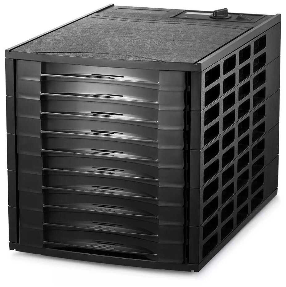- + Купил вчера. За сутки высушил уже 6 кг мяса. Очень понравилось, что сушка равномерная на всех поддонах, ну может самый верхний чуть хуже сохнет. Заряжал сразу всё 10 лотков. Боялся что пластик хуже чем металл, но к металлу всё прилипает а пластик отлично работает , работа таймера без нареканий. рекомендую