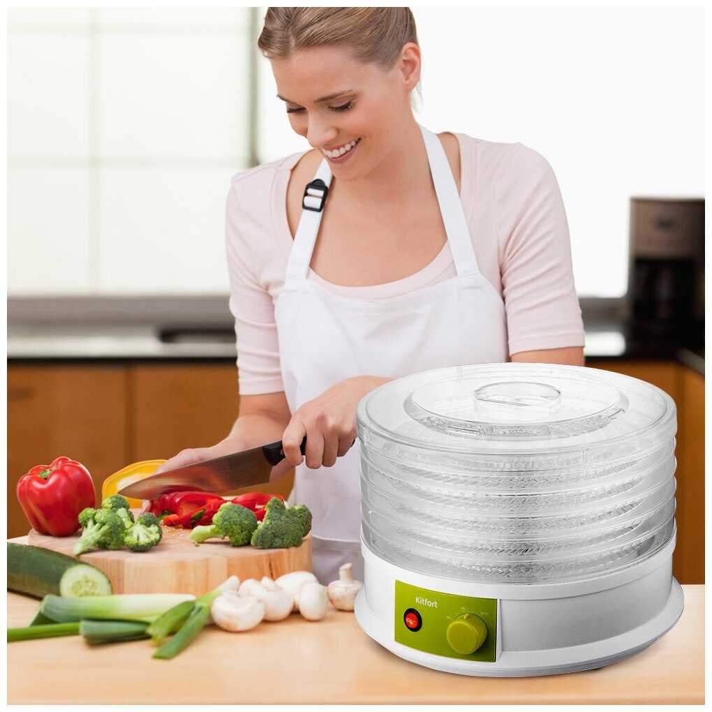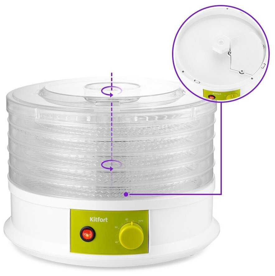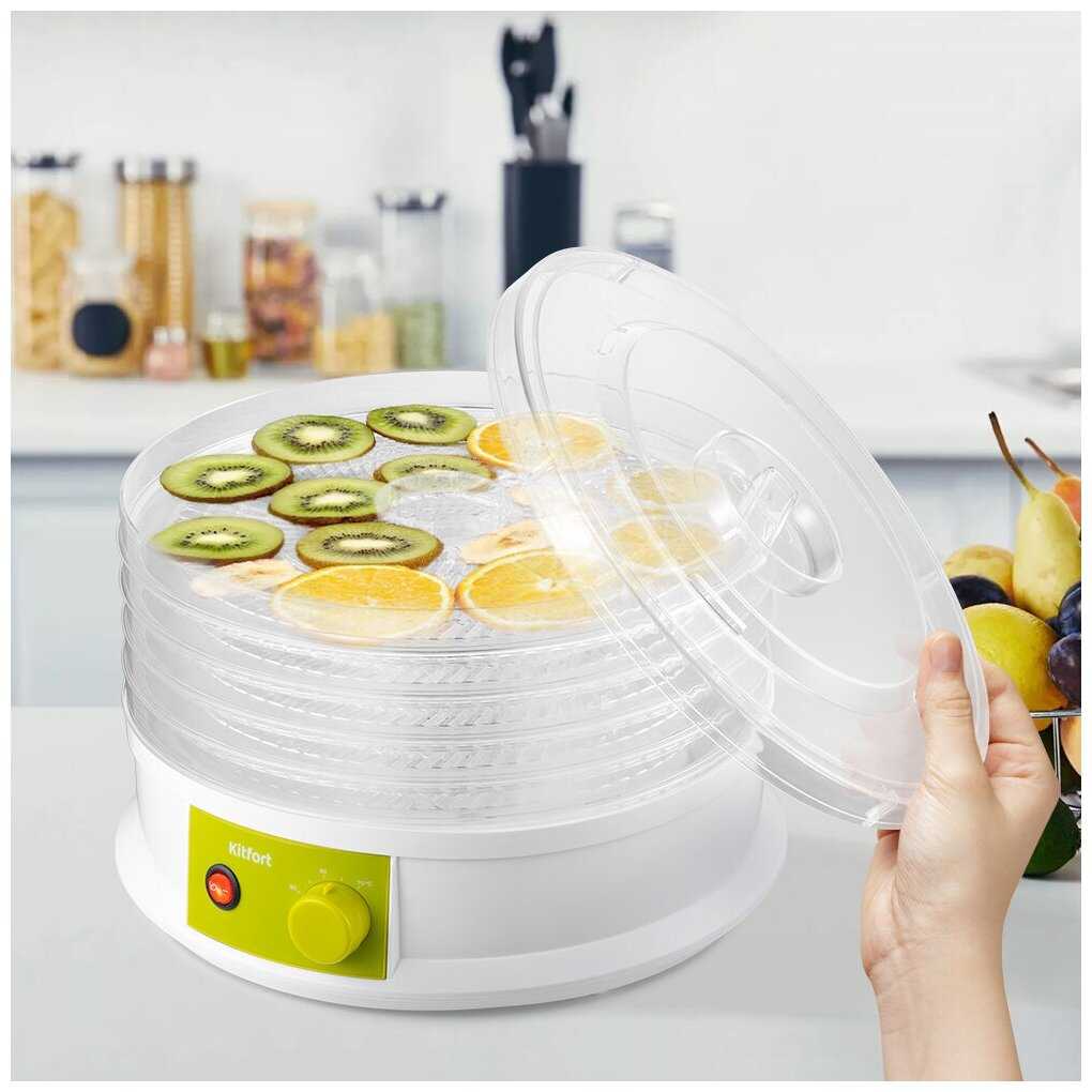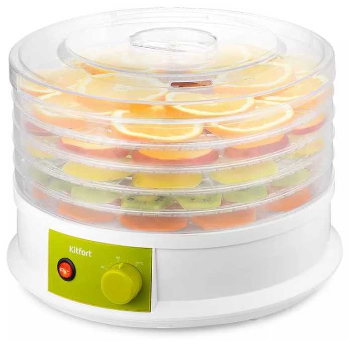 Сушилка Kitfort достаточно компактная, не шумная. У сушилки 5 поддонов, что вполне достаточно для домашнего использования! Через прозрачную крышку удобно проверять и оценивать степень просушки. В комплекте была инструкция, где расписаны продукты, время и температура для готовки. Сушила груши дольками, так как они были жестковаты, время сушки увеличила. Яблоки, слива также получились хорошо, единственное, что сливу немного на солнце еще досушила, можно было и в сушилки наверное, но на пару часов решила на солнце оставить (слива была крупная). Покупкой довольна.