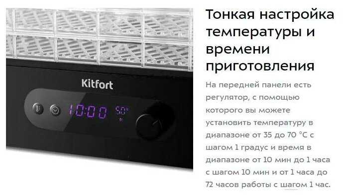 - Регулировка температуры и таймера с шагом 1°C и 10 минут: