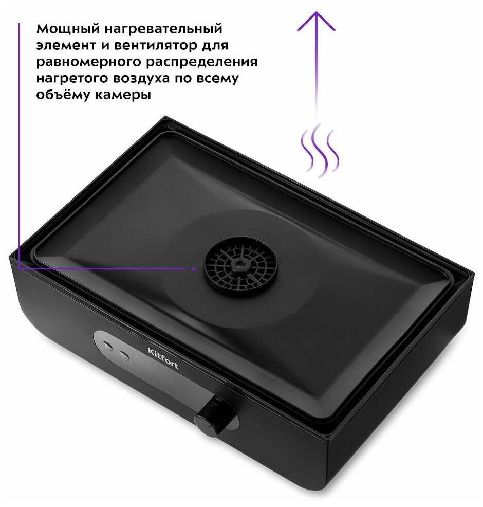 - + компактный, что очень удобно для маленькой кухни( 9м2), стильно смотрится в интерьере, все необходимое продумано - таймер, температура на дисплее, вентилятор, относительная бесшумность