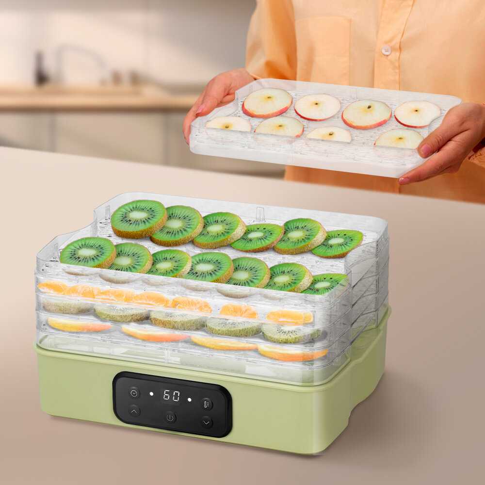 - + Отличная сушилка, купили так как попробывали у знакомых вяленую хурму и влюбились в этот довольно простой и вкусный фрукт. Сушилка довольно простая в управлении, справится даже ребенок. Выставляешь температутру и время сушки, и всё, дальше ога сделает всё сама.
