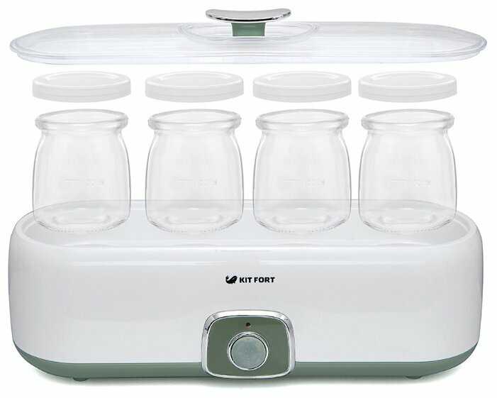 Приобрели эту чудо-вещь йогуртницу, о которой давно мечтали. Спасибо огромное всем за отзывы, благодаря вам мы выбрали именно эту йогуртницу компании Kitfort. Вещь просто уникальная. Очень красивый дизайн, компактная, рассчитала на 4 баночки, каждая по 180 мл, что позволяет не только детям, но и взрослому человеку полноценно позавтракать. Йогурты может сделать даже ребёнок. Наш сын 9 лет с удовольствием принимает в этом участие и всё делает сам, что очень удобно, когда родители заняты, а завтрак или полдник всегда на столе. Мы делаем так:молоко 750 мл разводим с закваской vivo половинку пакетика(в самой коробочке 4 пакетика что позволяет делать до 12 л йогурта)перемешиваем и разливаем в баночки которые идут в комплекте,закрываем крышками ,ставим в йогуртницу,немного наливаем воды под баночки и включаем на 8 часов,после выключаем и ставим в холодильник на 1,5 ч,а дальше просто объедение,и очень приятно что это свое домашнее,безумно вкусно,для малыша 1,8 года я добавила варенье малиновое ложечку чайную,съела все))спасибо производителю,инструкция в комплекте очень удобная,подробная !!!!