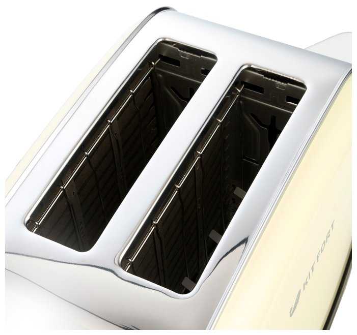 - + Решили заменить прежний тостер известного популярного бренда на новый.Старый понадобился на даче.Искал замену в магазинах,в интернете.По фотографиям на сайте Ситилинка мне и жене очень понравился Kit Fort-2014-2.Заказали,получили,распаковали и поняли,что не ошиблись.Очень приятное сочетание бежевого цвета с металлическим глянцевым корпусом.Внешний вид солидный.Качество сборки радует.Зазоров,люфтов,царапин не обнаружил.Смотрится очень достойно даже среди своих"собратьев"из более высокой ценовой категории.На мой вкус даже превосходит некоторые из них.Я человек придирчивый.Каждую покупку тщательно осматриваю ещё до проверки работоспособности.Здесь,на удивление-ни пятнышка,ни царапинки.Глянцевая металлическая поверхность корпуса идеальна.Смотришь,как в зеркало.Длина провода-0,7 м.Вполне достаточно.Старый тостер при выбросе тостов подпрыгивал,как арт.орудие после выстрела,издавая резкий лязгающий звук.Кот был в шоке.Даже заранее покидал кухню.Kit Fort эту операцию проделывает плавнее,намного тише.Даже кот успокоился,не обращает внимания.