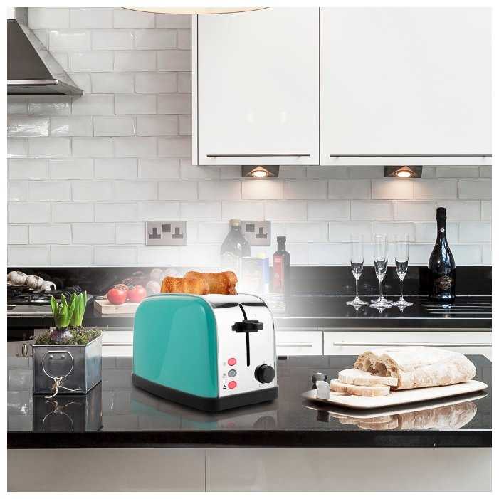 - + 1. Яркий и стильный дизайн: Красивый голубой цвет делает тостерницу не только функциональным прибором, но и привлекательным элементом интерьера вашей кухни.