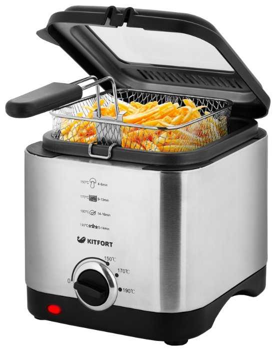 - + Фритюрница Kitfort стала для меня настоящим открытием и прочно обосновалась на кухне! Я давно искала способ готовить любимые хрустящие блюда и эта модель полностью оправдала ожидания картофель фри, куриные крылышки получаются с золотистой корочкой и остаются сочными внутри. Очень ценю ее за феноменальную простоту использования: всего один регулятор температуры и времени, никаких сложных программ, разберется даже ребенок. Очень понравилась. Всем рекомендую!