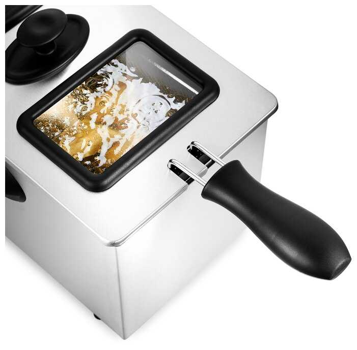 - + Фритюрница работает хорошо, есть индикатор температуры, можно выбрать нужную степень нагрева масла.