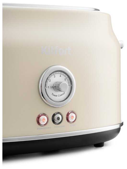 - + Безумно красивый и стильный тостер, очень удивилась, что Китфорт - российская компания. Качество супер, при первом включении немного есть запах пластика. Регулятор работает отлично, на 1 немного подсушивает, а на 4 уже хорошо поджаривает. Только за его внешний вид можно поставить 5 звёзд!! Но и качество отменное