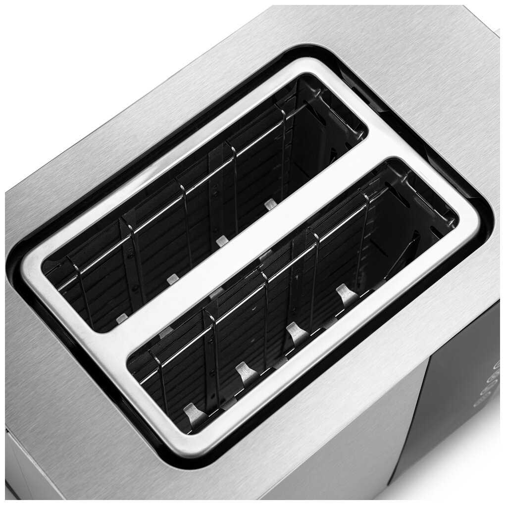 4. Помещает в себя стандартные тосты, но и толстые ломтики хлеба, булочки или даже небольшие круассаны. Легко чистить от крошек из-за съемного лотка.