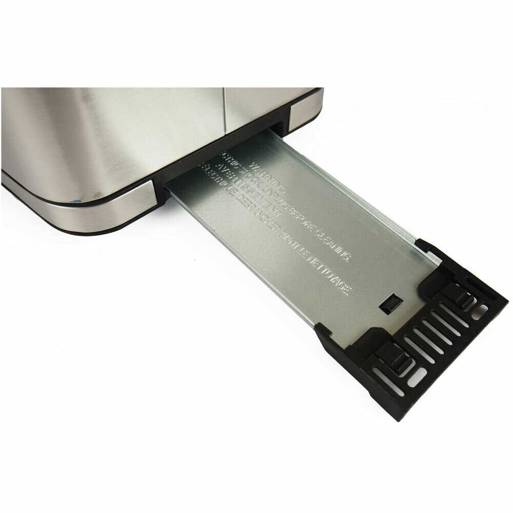 - Поддон выдвигается с задней стороны, что вынуждает переставлять тостер для очистки.