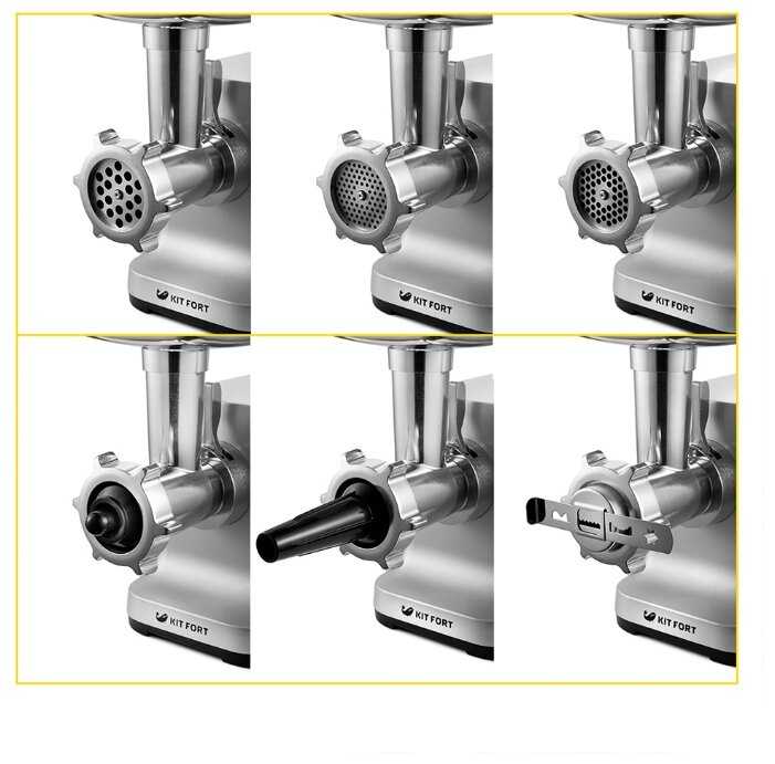- + Начну с того, что долго выбирала, нужна была мощная машинка, так как достаточно много и часто кручу мясо. В этой модели отличная комплектация. Есть три диска для фарша разного калибра, насадка для приготовления колбасы (для меня это тоже было важно). Насадкой для нарезки печенья пока не пользовалась, но думаю, что нужно попробовать. Фарш крутит очень быстро, говядину жилистую перекручивает в момент.