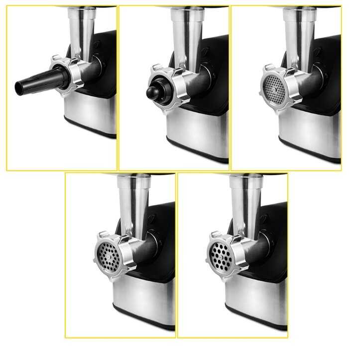 - Решетки с отверстиями 3 мм, 5 мм, 7 мм позволяют регулировать консистенцию фарша.