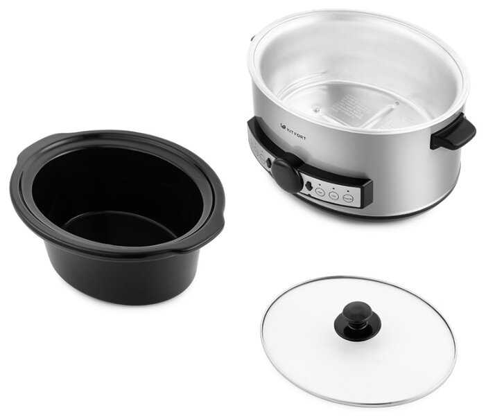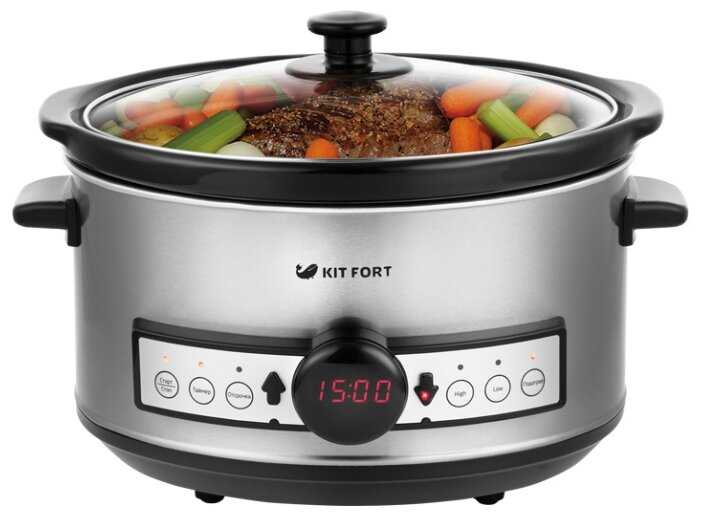 kitfort пожалуй единственная компания на Российском рынке , которая продает медленноварки , достойного качества и по доступной цене , данная модель выглядит современно , керамическая чаша вместо металла большой плюс для вкуса еды , таймер на отсрочку и на приготовление сильно облегчает процесс приготовления.Съемная керамическая чаша легко моется , что тоже можно отнести к плюсам.Потребление электроэнергии минимальное - как две лампочки на 100Вт.