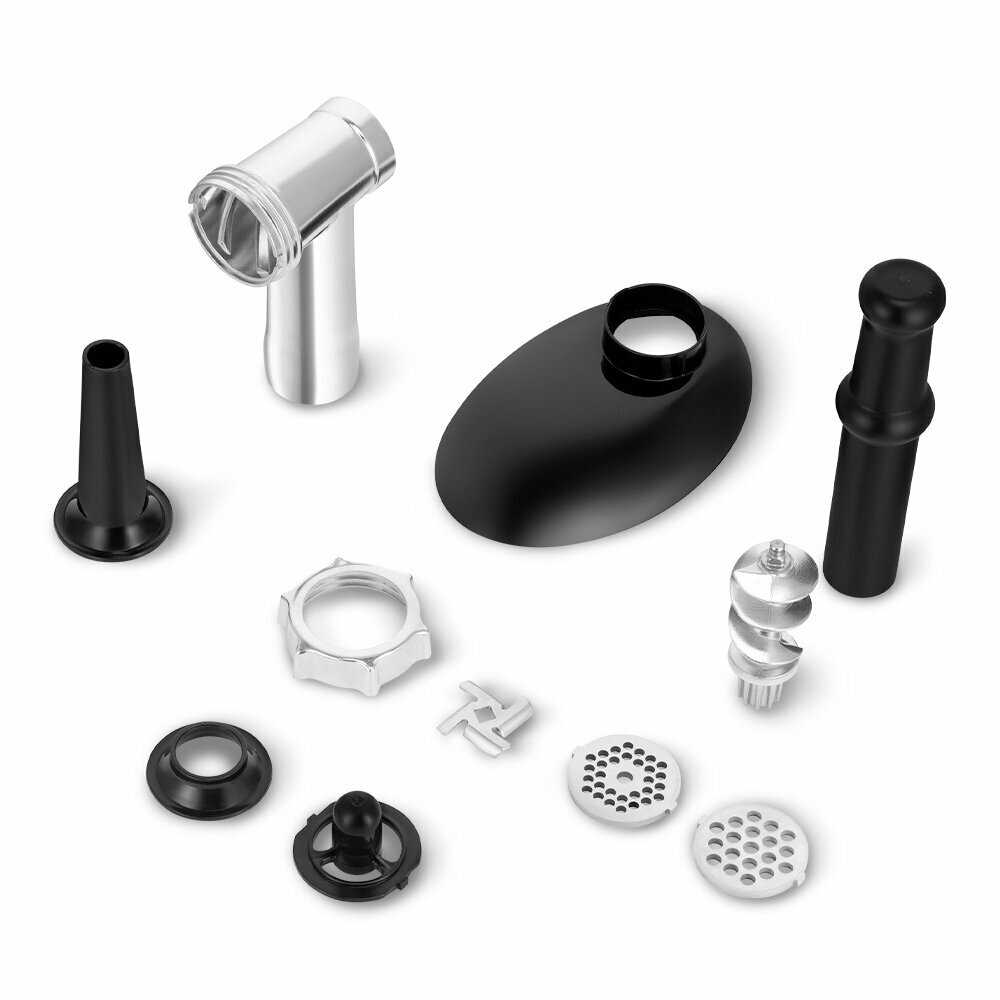 - Встроенный отсек в толкателе вмещает все насадки (кеббе, колбасные шприцы).