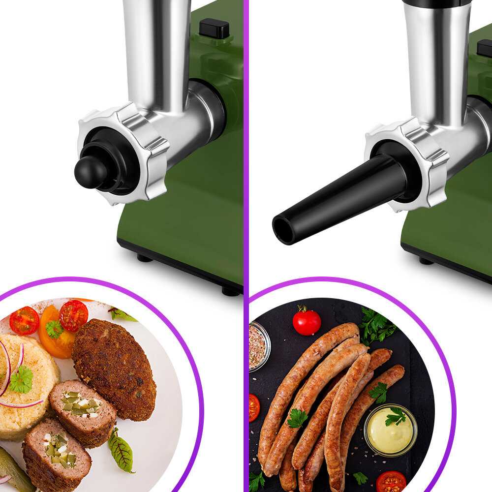 - + Электрическая мясорубка стала настоящим спасением на кухне! Она справляется с любым видом мяса, будь то говядина, свинина или курица, превращая его в идеальный фарш за считанные минуты. Мощный двигатель и острые ножи обеспечивают быструю и качественную обработку, а простота сборки и ухода делают использование максимально комфортным. Благодаря компактному дизайну мясорубка не занимает много места, а её стильный внешний вид гармонично вписывается в интерьер кухни. Дополнительные насадки позволяют не только готовить фарш, но и делать колбаски и кеббе. Это устройство — идеальный помощник для тех, кто ценит время и качество в приготовлении домашних блюд.