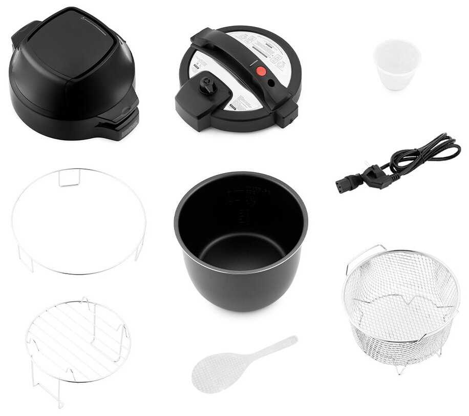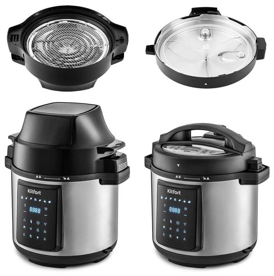 - + Качественное объединение в одном агрегате скороварки, аэрогриля, пароварки и медленноварки.