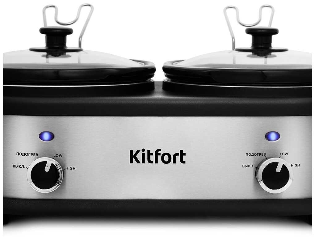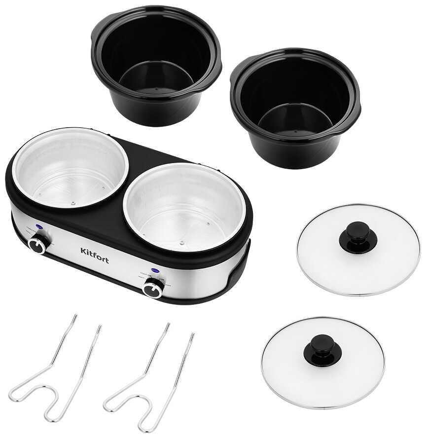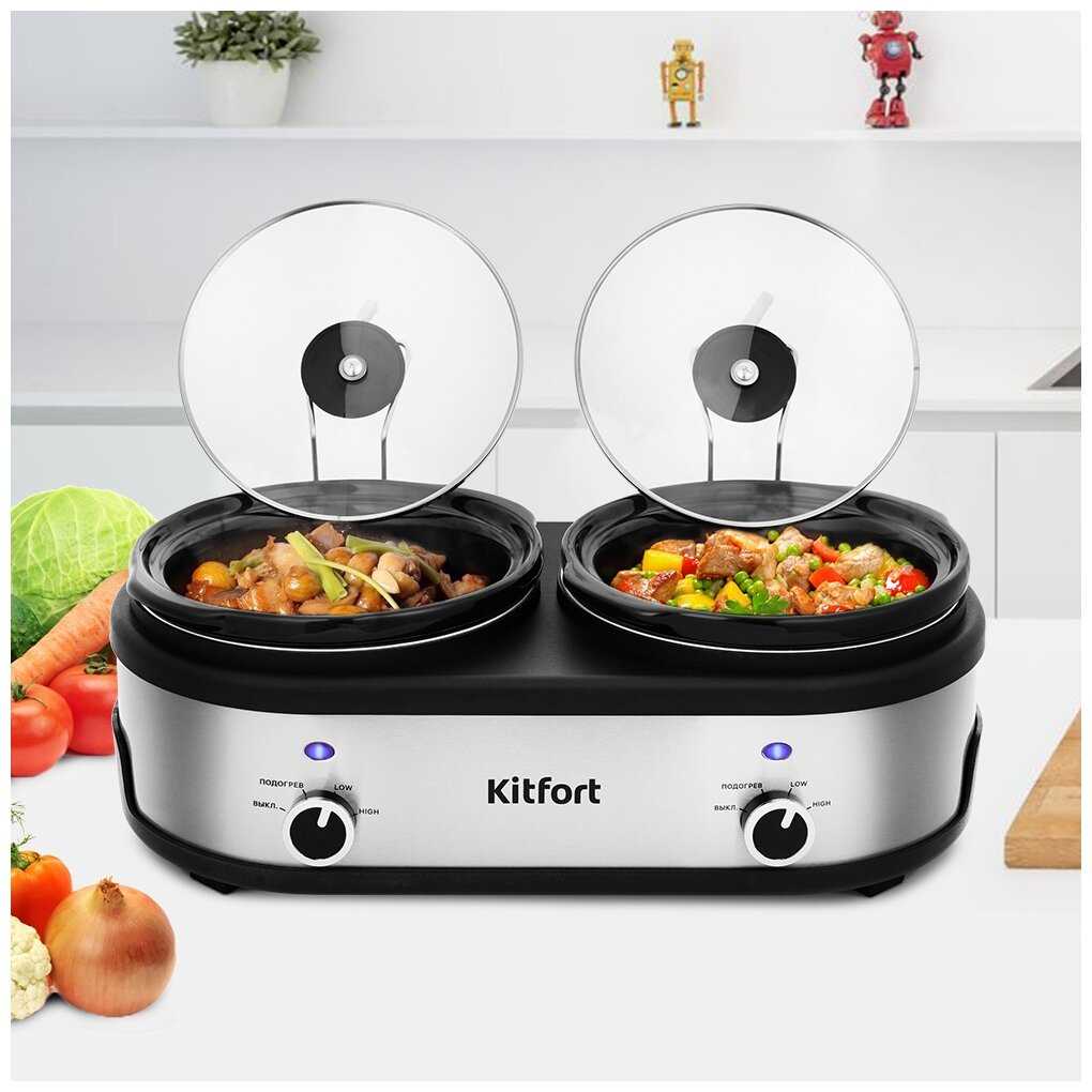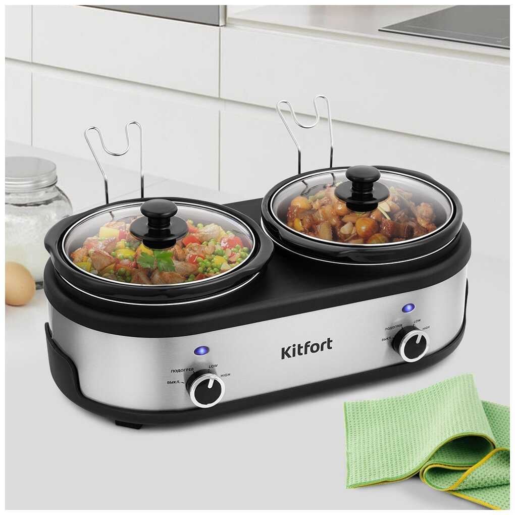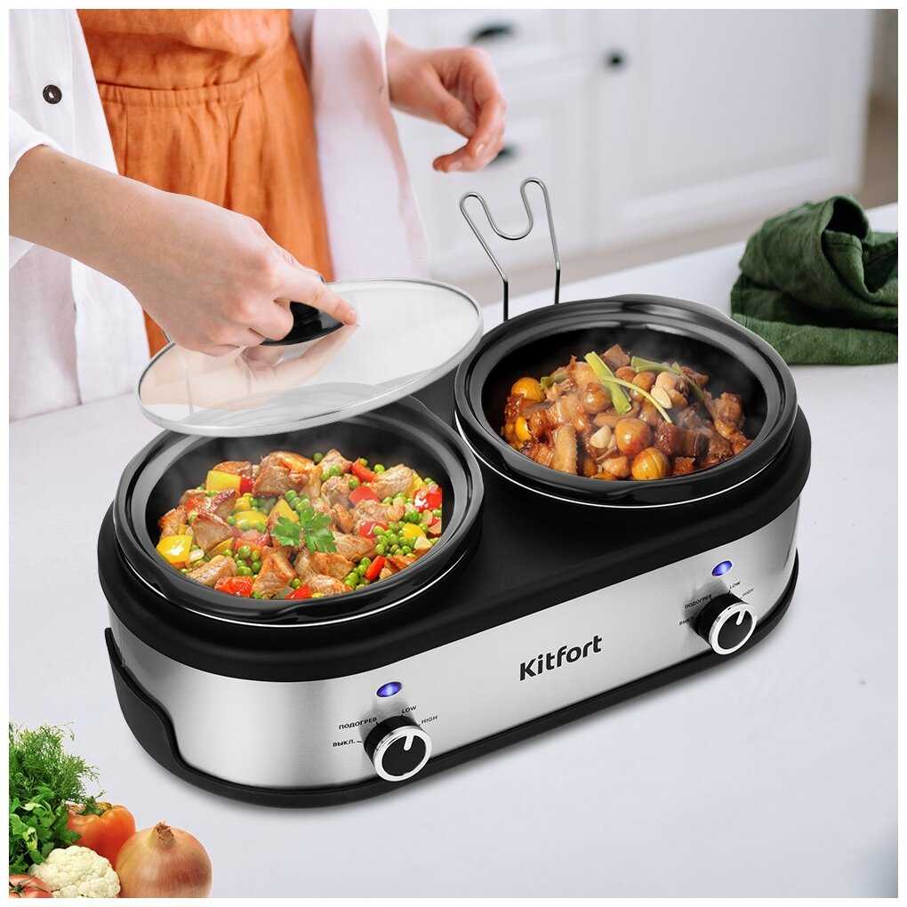 - + Приготовление пищи идет на основе пастеризации, примерно 96 градусов, без кипения. Подходит для людей, находящихся на диетическом питании стол номер 5 и для детей. Можно готовить без масла. Пища вкусная, здоровая. Приготовление курицы с овощами длилось до 5 часов, не кипело, не парило, не было запахов в комнате, не требовало внимания совсем. Расход электроэнергии минимальный при этом. Я приобрела медленноварку Kitfort 219 с двумя кастрюльками по 2л. Можно готовить одновременно два разных блюда, у каждой кастрюльки отдельное управление.