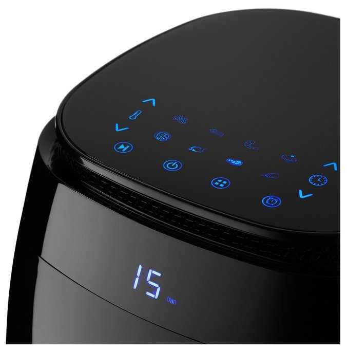 Выбрав данные программы на панели управления, аэрогриль сам выставляет температуру и время приготовления, а также режим включения работы тена, что позволяет более качественно приготовить те или иные блюда. Но даже в данных программах вы можете изменить температуру и время приготовления.