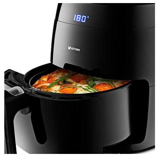 Выбор пал на аэрогриль Kitfort, так как ранее, мы купили чайник этого производителя и остались им очень довольны. Сам аэрогриль достаточно легкий, оптимальные габариты позволили без проблем разместить его на довольно не большом рабочем столе, все чаще стала наблюдать как готовит муж, так как аппарат очень прост в использовании.)) По шумности работы сопоставим с микроволновкой, продукты получаются очень вкусные, с аппетитной корочкой, а главное без использования масла и жиров(или с их минимумом), благодаря отличному антипригарному покрытию, сама чаша и корзина моются великолепно. До максимальной температуры(200 градусов) прогревается очень быстро, внешние части и сама ручка не нагреваются даже после длительного использования, при готовке нет чада и почти нету запаха готовящейся еды (даже при выключенной вытяжке), так как чаша большая, то в ней очень удобно разогревать еду без вреда для здоровья. Мы очень довольны покупкой!