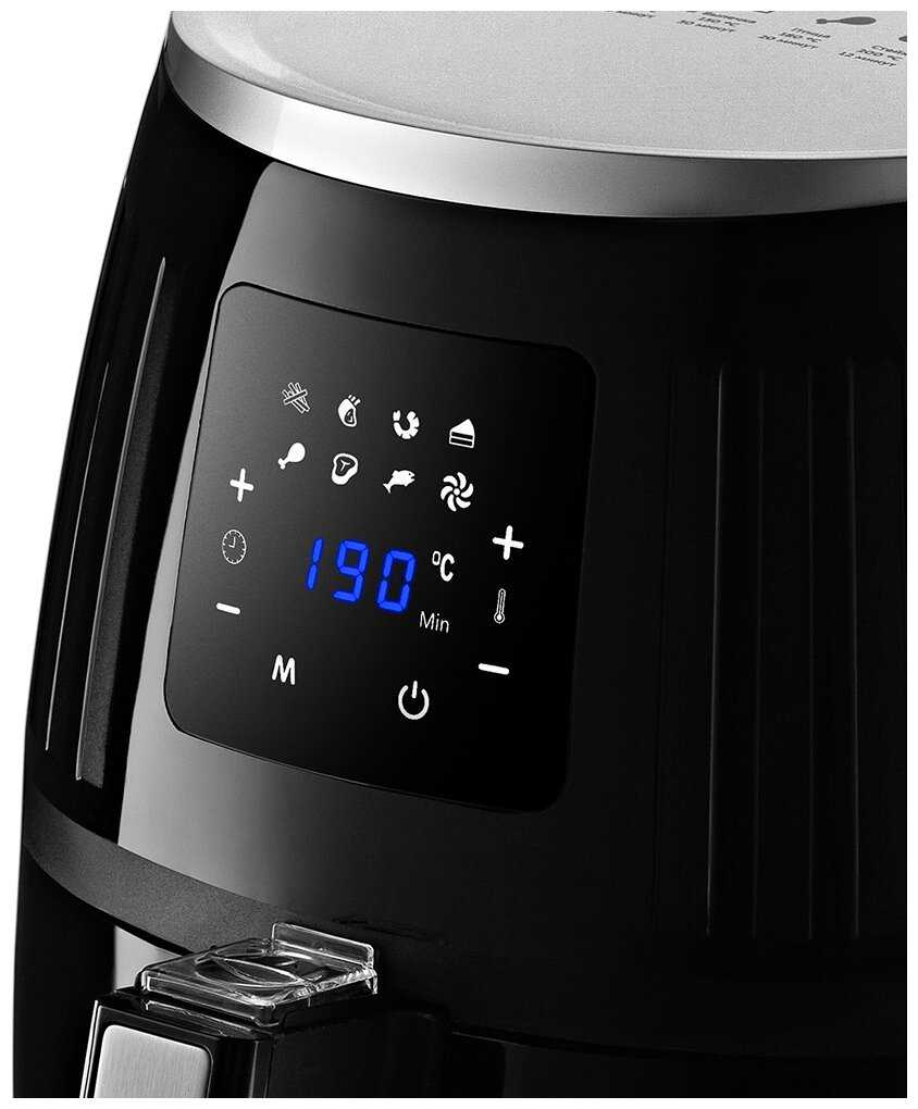 Очень понравился аэрогриль, объем чаши достаточно вместительный, для семьи 3-4 человека отлично, и так как еда быстро готовится, можно в несколько заходов готовить еду. Все получается вкусно, минимум масла. Внешний вид стильный, мощность хорошая. Дисплеем легко пользоваться, можно выставить самим время и температуру, а подсветка вообще супер, удобно наблюдать за приготовлениям блюда, не вытаскивая его. Я очень довольна)