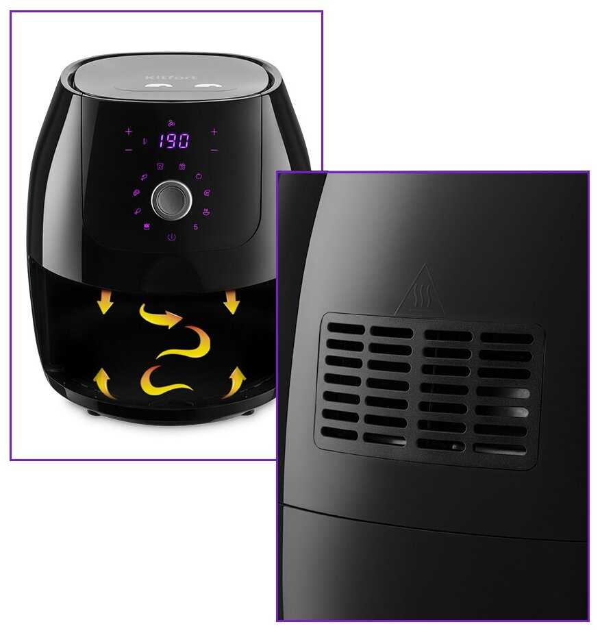 - Конвекция обеспечивает циркуляцию горячего воздуха, что исключает необходимость добавления масла (например, картофель фри с минимальным количеством масла).