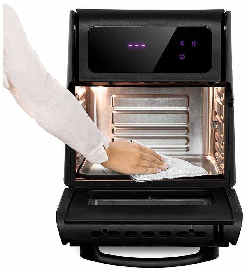 - Камера 15 литров не позволяет готовить крупную птицу (свыше 2 кг) или большие порции картофеля фри за один раз.