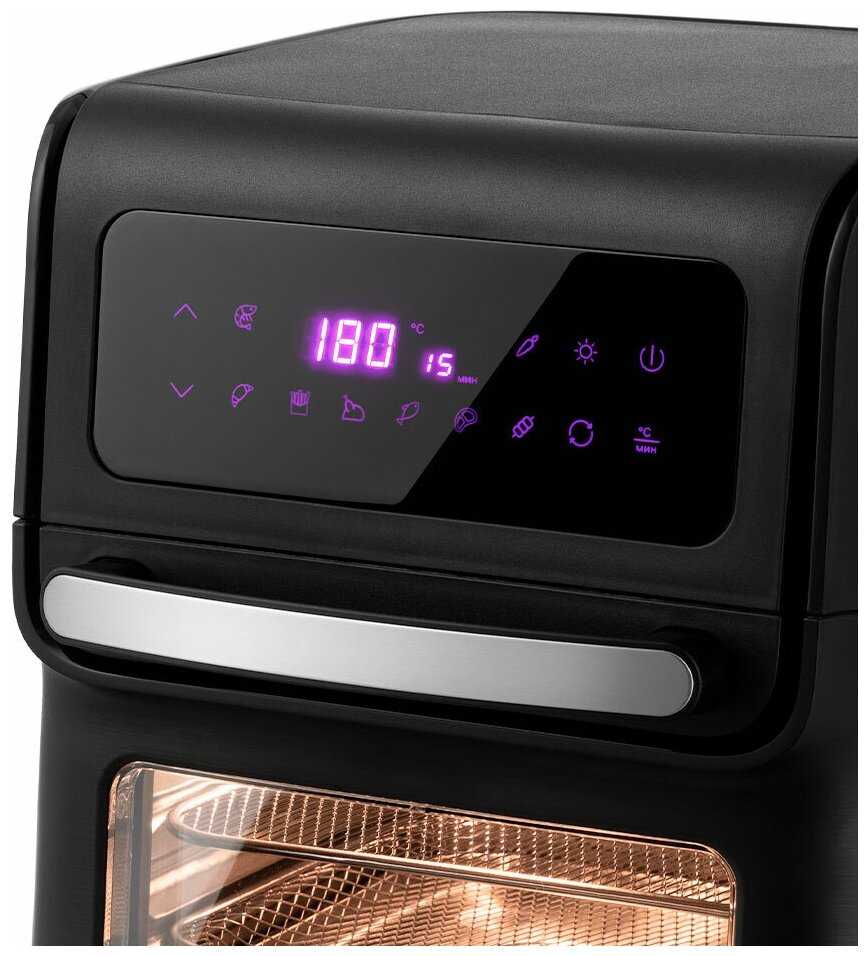 - Камера 15 литров не позволяет готовить крупную птицу (свыше 2 кг) или большие порции картофеля фри за один раз.